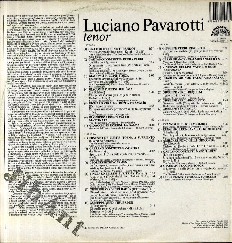 2 LP - Luciano Pavarotti (Supraphon stereo, 1983)
